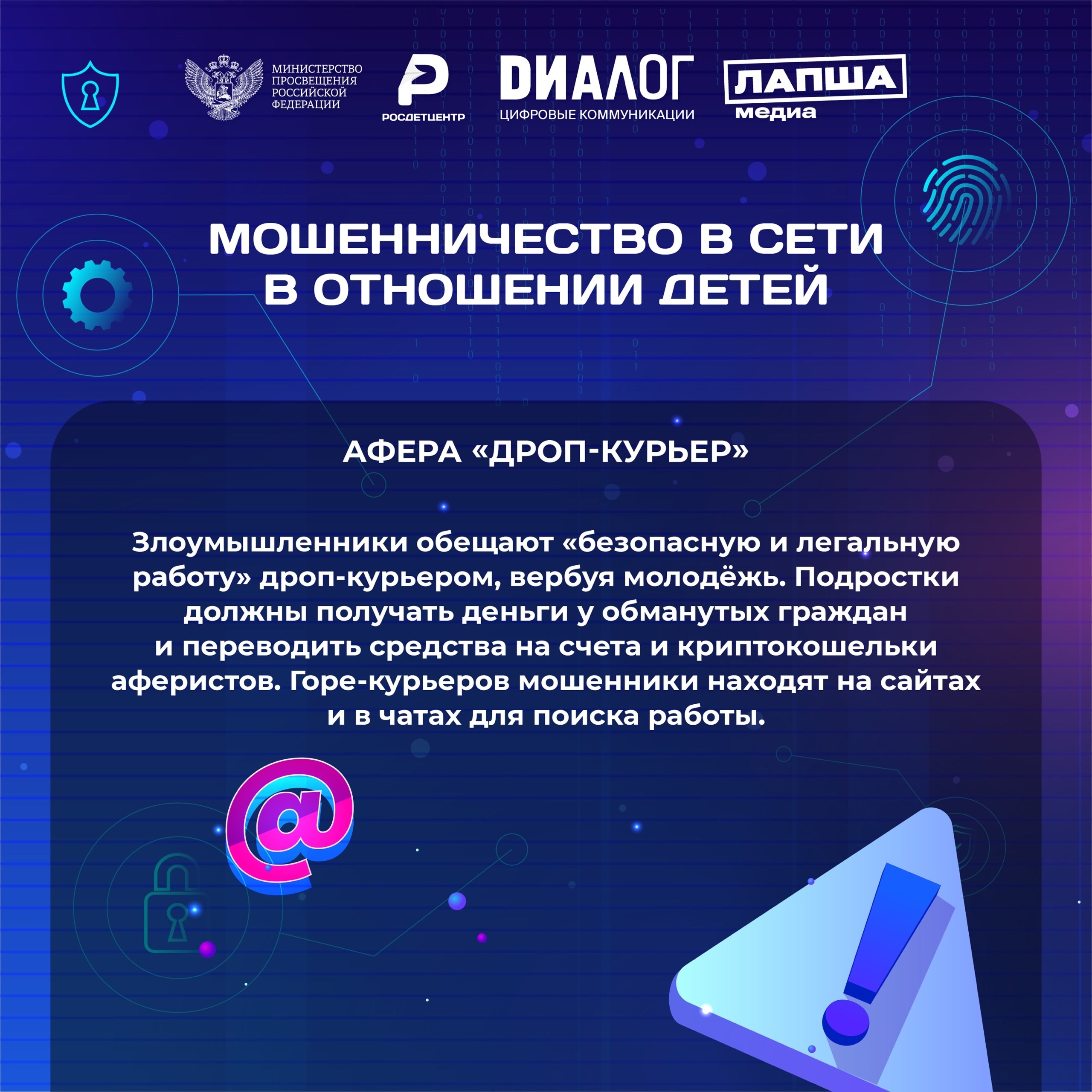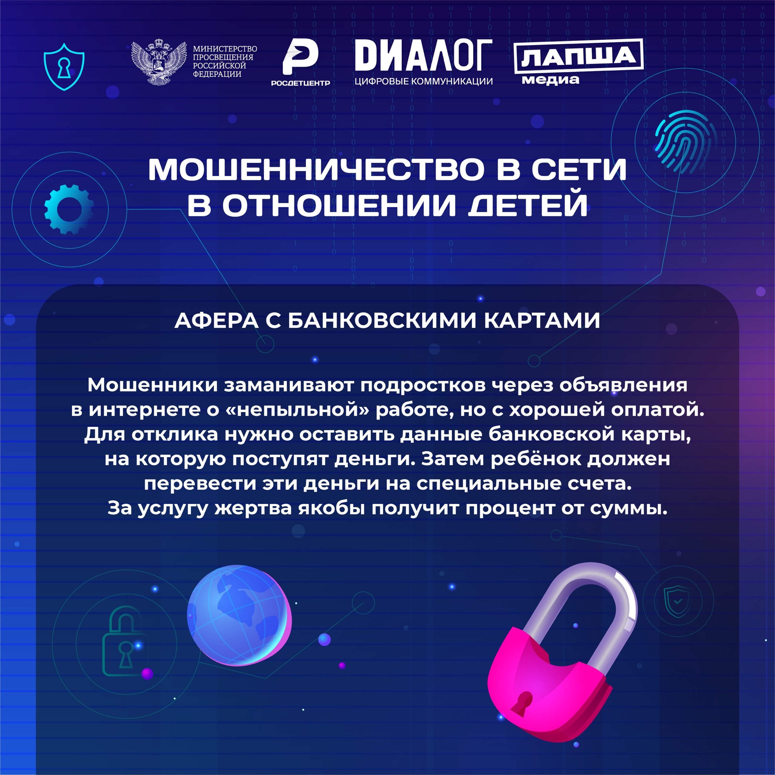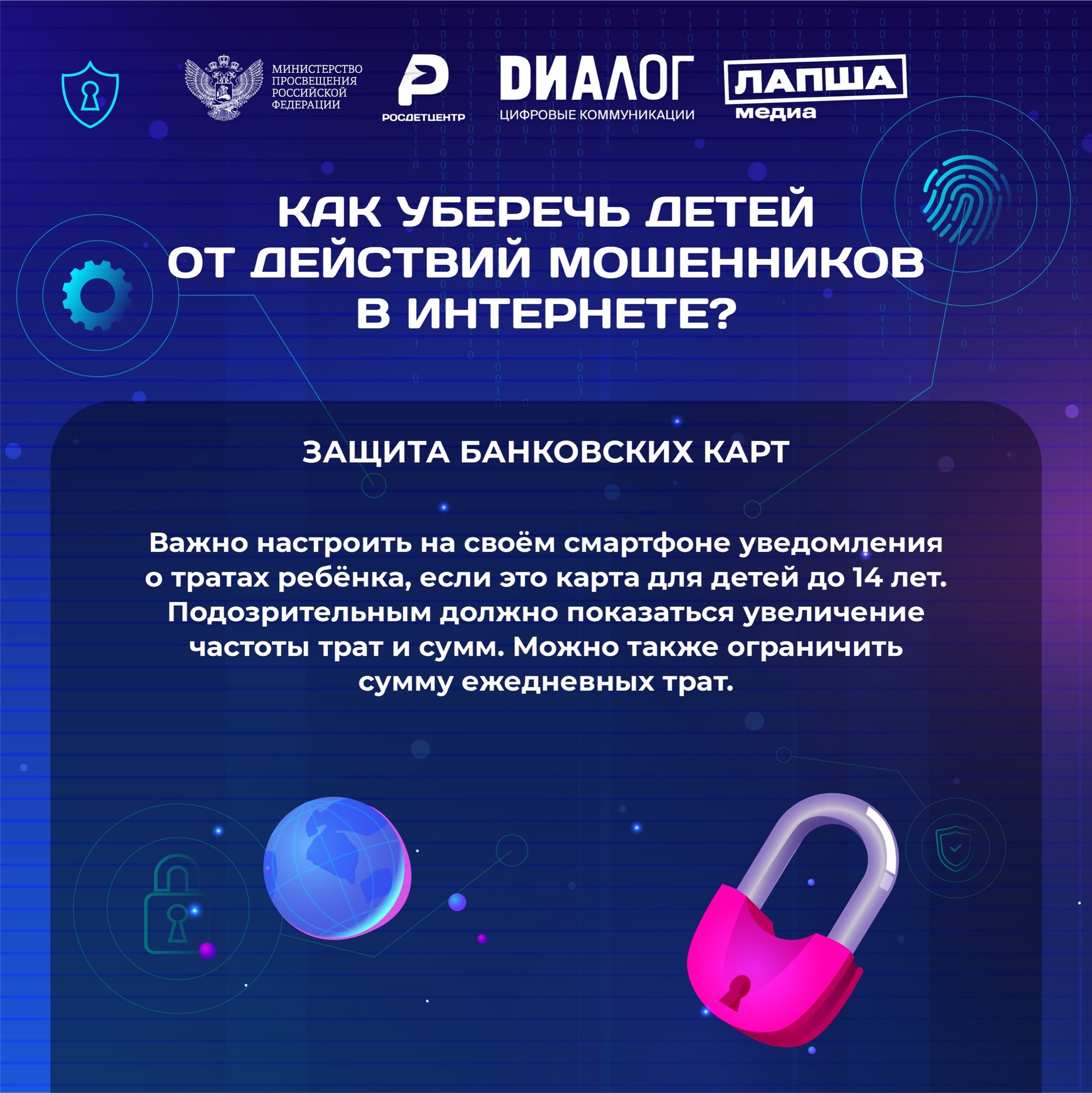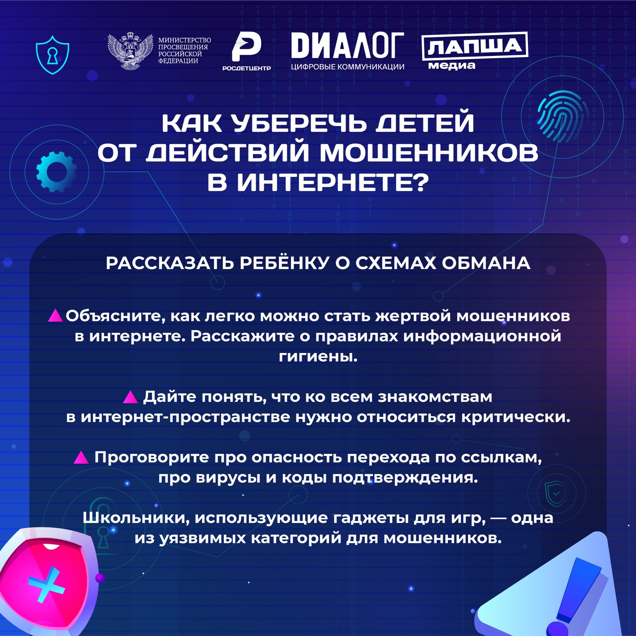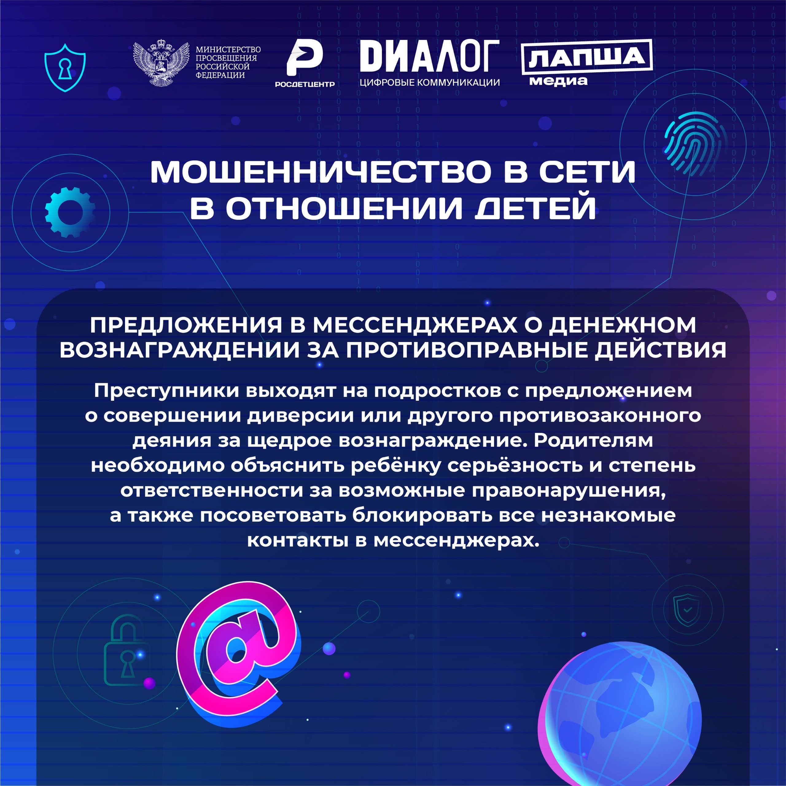 Знание и соблюдение основных правил безопасности в сети, которые мы вместе с нашими партнёрами из «Диалог» — цифровые коммуникации и фактчекинговым проектом Лапша Медиа собрали в полезные информационные карточки, помогут защитить вас и ваших близких от неприятных ситуаций.